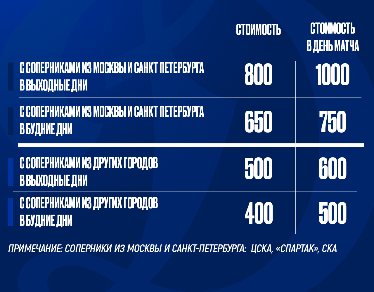 ВАЖНО! Кассы закрываются за 2 часа до начала матча.
