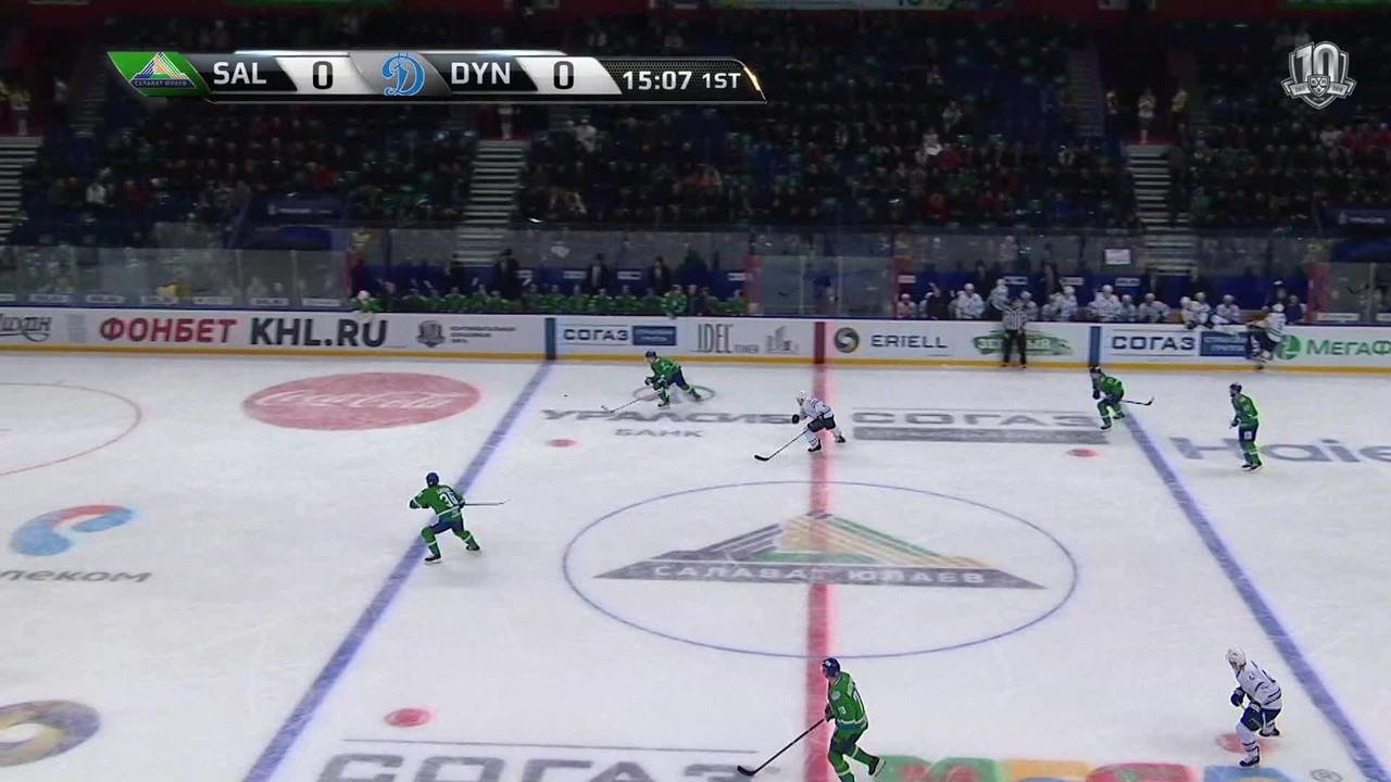 Опасный момент у ворот Ивана Бочарова (ХК Динамо М). Голкипер гостей на месте