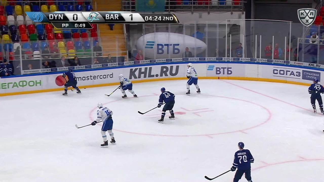 Удаление. Андре Петерссон (Барыс) получил 2 минуты за атаку игрока, не владеющего шайбой