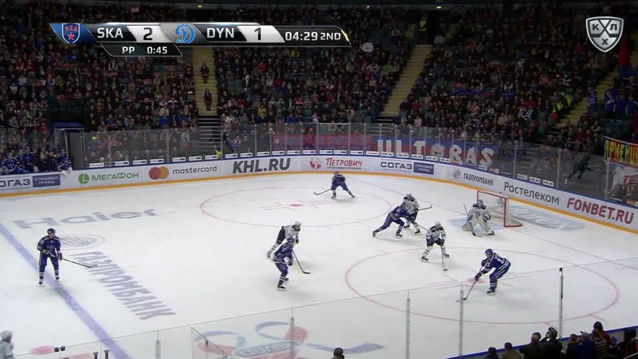 Гол. 3:2. Моисеев Дмитрий Ал. (ХК Динамо М) забрасывает шайбу