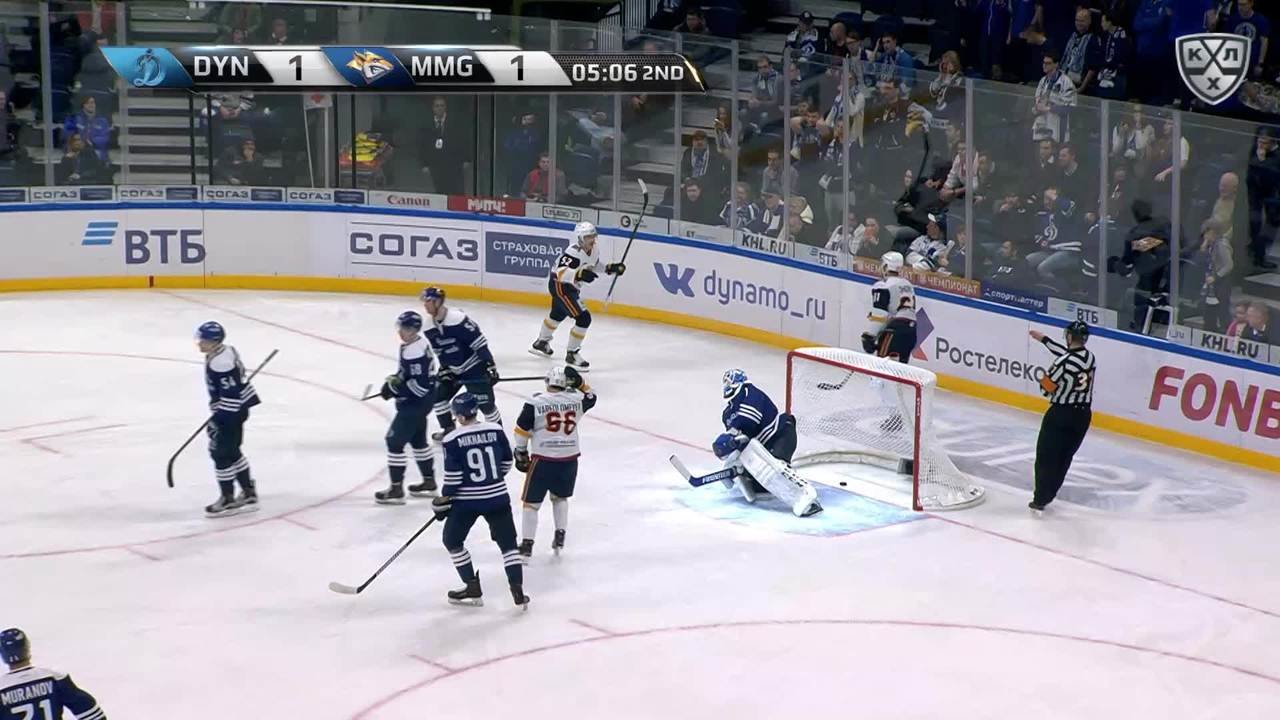 Удаление. Тарасов Даниил (ХК Динамо М) и Саболич Роберт (Торпедо HH) садятся на скамейку
