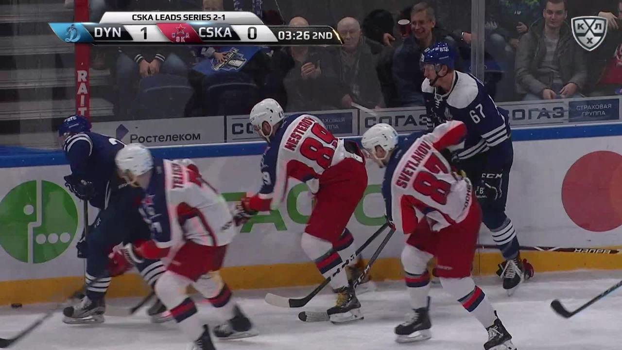 Удаление. Сергей Андронов (ЦСКА) удалён на 2 минуты за атаку игрока, не владеющего шайбой
