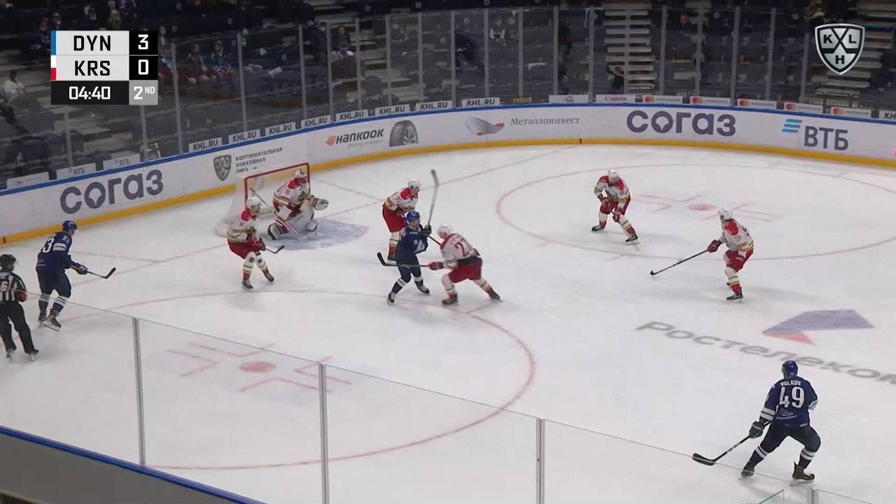 Гол. 4:1. Тарасов Даниил Вл. (Динамо М) забрасывает шайбу в ворота соперника