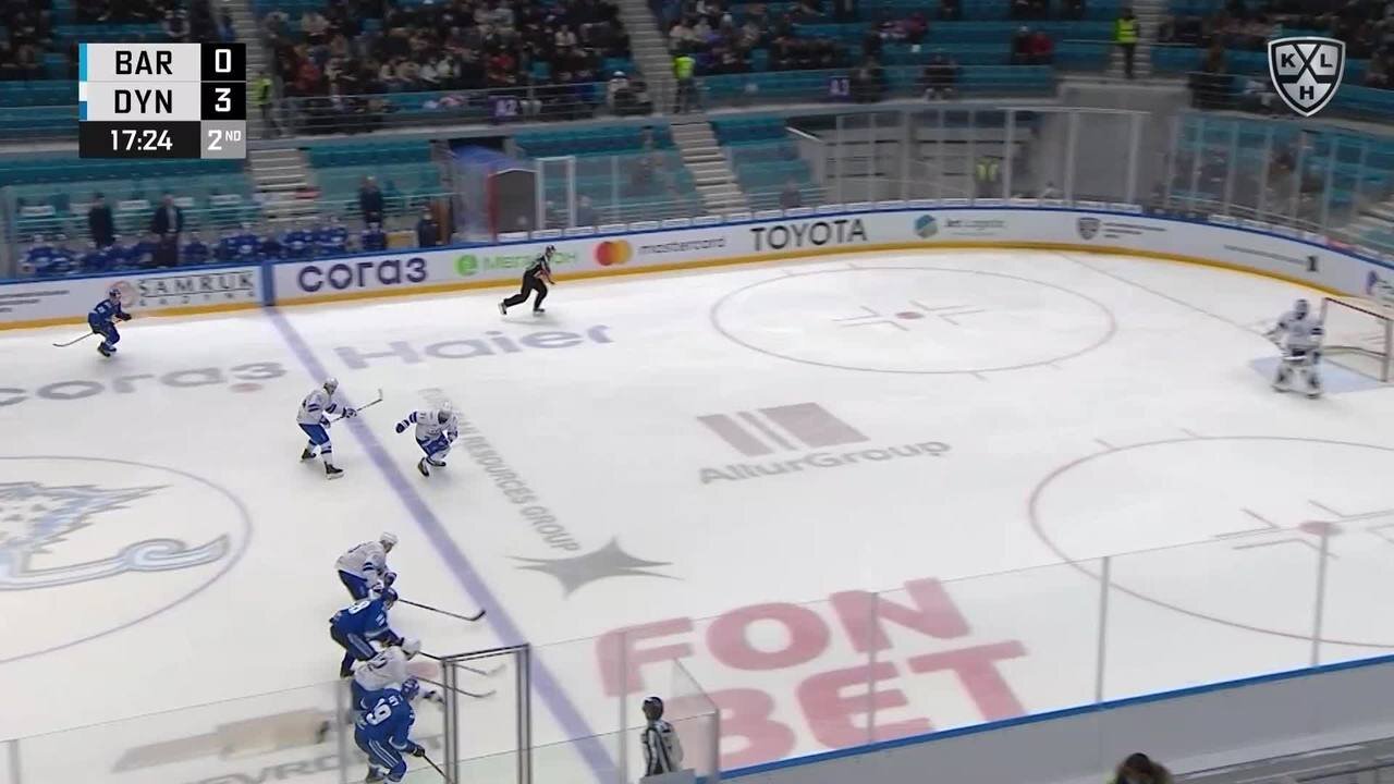 Гол. 2:4. Кёртис Волк (Барыс) подправил шайбу в ворота
